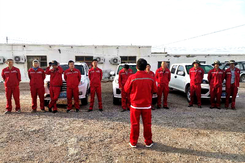 ??? 7月的沙漠戈壁,酷熱難耐,人跡罕至,在銀額盆地廣袤無際沙漠戈壁灘上,物化探隊環境工程公司的職工鏖戰正酣,為完成“銀額盆地南部地區區域地球物理調查--大地電磁測量”項目奮力拼搏,譜寫青春篇章。