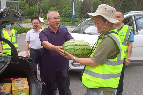 ??? 李新勝一行為一線職工送去了西瓜、飲料等夏季防暑降溫物品,同時(shí)鼓勵(lì)大家繼續(xù)發(fā)揚(yáng)不怕苦、不怕累、攻堅(jiān)克難的地質(zhì)精神,為公司的發(fā)展貢獻(xiàn)力量。?